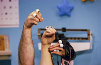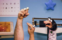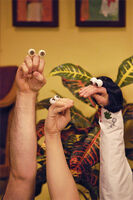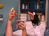 Dr. Rose is Oobi's doctor and a minor character on the show. DescriptionDr. Rose guest stars in the "Checkup!" episode, where she is the main focus. She is a caring pediatrician who works at the local doctor's office. She has taken care of Oobi, Moppie and Chauncy. She always makes sure to calm her patients when they are nervous around her. In the episode, Oobi is nervous to visit her, since he has never had a checkup before. Oobi sees Chauncy leaving Dr. Rose's office and asks if she is nice. Chauncy insists that she's very nice, making Oobi feel at ease. Grampu accompanies Oobi at the checkup, where Dr. Rose makes a lot of jokes. She talks with Oobi about his family, and he talks about how silly his sister Uma is. Dr. Rose mentions that she has a brother, who she says is also silly. LooksDr. Rose is a fair-skinned hand puppet. She has dark brown eyes and black hair styled in a bob cut. She wears a white doctor's coat decorated with pins: a thermometer, a stethoscope and a green handprint. GalleryEpisode scenesProduction photos
