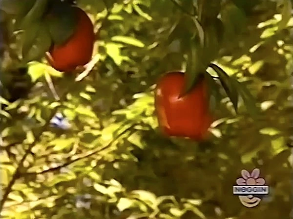The orchard is an open area of land in Oobi's neighborhood. It is the setting of the short "Apple Picking!". DescriptionOobi, Uma and Kako visit the orchard to pick the perfect apple. It is a wide open space where many tall apple trees are planted. Uma finds a shiny red one on a high branch and tries to reach it. She has trouble for a while, but she is finally able to grab it when Oobi and Kako help boost her up. LooksThe orchard seems to cover a very large area of land. Many rows of green apple trees can be seen in the background. A few rays of sunlight come through openings in the trees' leaves. Gallery